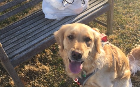 So, early the next morning, I decided to walk back to the duck pond. This time, instead of stale Goldfish, I grabbed a tall white kitchen garbage bag and my helper-pup, Jane. On my way out, I invited Kate to join us, but she responded that she was really comfy in her bed with her iPad. When I explained to her why I was going back, my old-soul daughter listened, smiled knowingly and went back to playing her game.