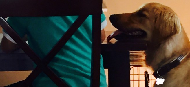 We’ll have to break him of his overly enthusiastic hugs, chewing of EVERYTHING and his ability to grab things off the counter with ease. He will need to learn how to sit and stay, walk on a leash and not jump at the screen door and/or windows. He has a lot to learn and so do we.